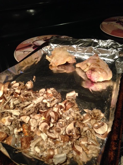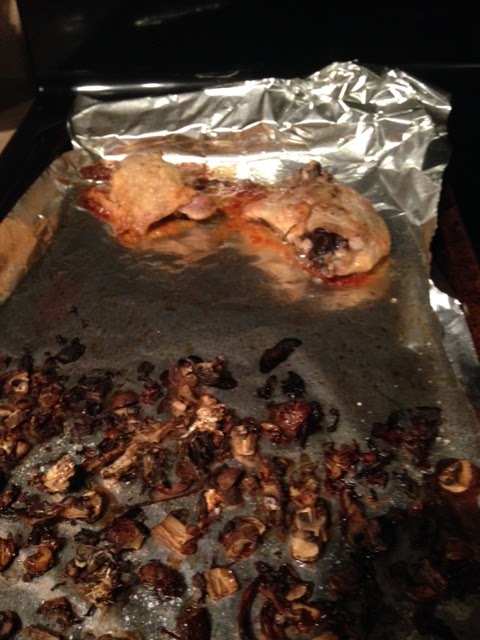 and roasted in the oven tasted very good, but one thigh is not enough for dinner. It's not an expensive cut of meat, and if one of your thighs was paltry (like mine), then you might have been hungry at the end of your meal. Especially if your mushrooms were shriveled to oblivion, but we'll get to that in a second. If I hadn't needed a lunch to take to my all-day class tomorrow, I would have eaten the entire two portions for dinner.